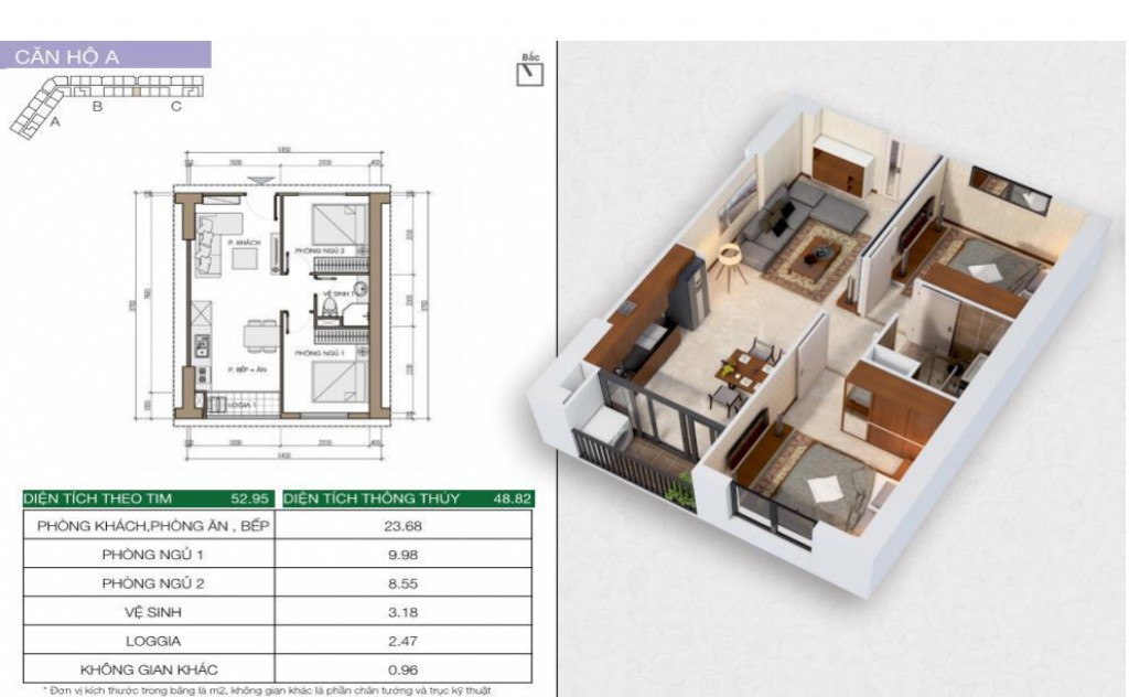 | Căn hộ A - 48m2 - Xuân Mai Sparks Tower |